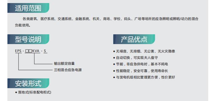 .当市电正常时,由市电经过互投装置给负载供电,同时充电器给备用电池进行智能充电。当市电断电(或超过正常电 压的25%时),由控制器提供逆变信号,启动逆变电源,同时互投装置将立即投切.EPS应急电源为一级负荷消防设施/消防应急照明或其它负荷等各种380V/220V用电电器与设备提供应急供电。